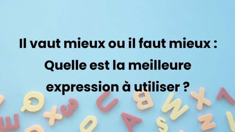 L’expression “il vaut mieux” et l’expression “il faut mieux” sont souvent confondues en français. Pour utiliser la langue de manière correcte, il est crucial de comprendre la différence entre ces deux formulations.
