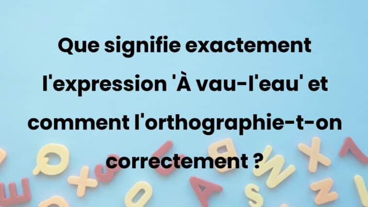 Concernant l’orthographe, il est important de ne pas oublier le trait d’union entre les éléments de l’expression : « À vau-l’eau ». Cette orthographe correcte est essentielle pour maintenir la clarté et la cohérence dans vos écrits.